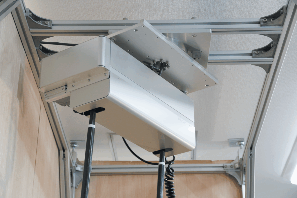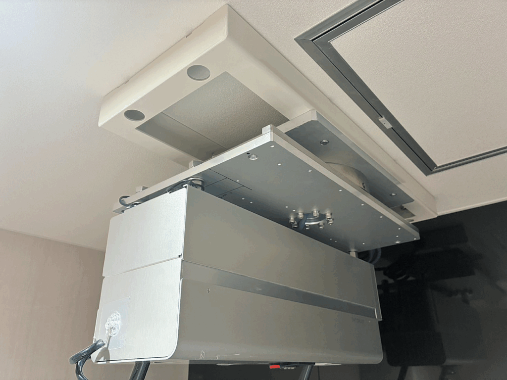 1.ハンガーから体幹支持具を取っていただき、操作スイッチで下降させます。