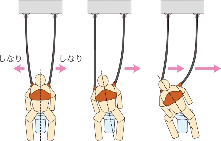 健常者の立ち上がり動作と同じ動きで、頭頚部の負担を軽減します。