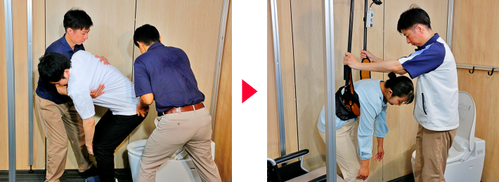 一人での介助が可能になるだけでなく、介助者が抱え上げる動作がなくなるので、身体的負担も軽減されます。