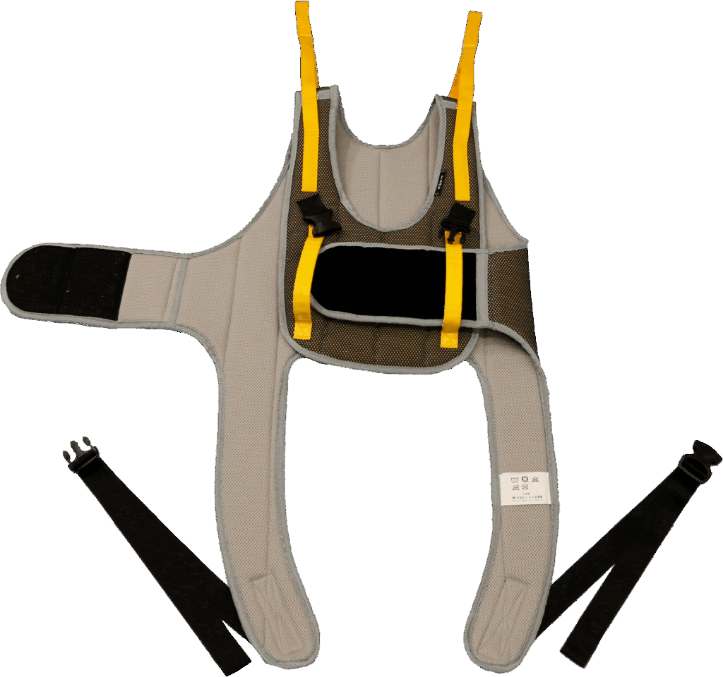幅広の体格にフィットするオリジナルスリングは、立位でも座位でも3ステップ。簡単な装着が可能です。